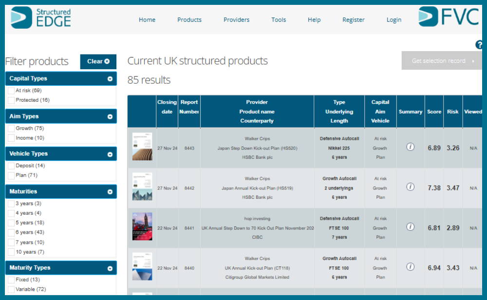 Structured Edge is the premier structured products analytics service for financial advisers. It analyses thousands of products across both the UK and offshore markets