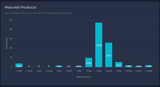 1100 of the MAANG linked products have already matured with an average return of 7%. The vast majority have made a positive return but the average has been dragged down by a small number of products that have breached their barrier and lost a substantial amount.